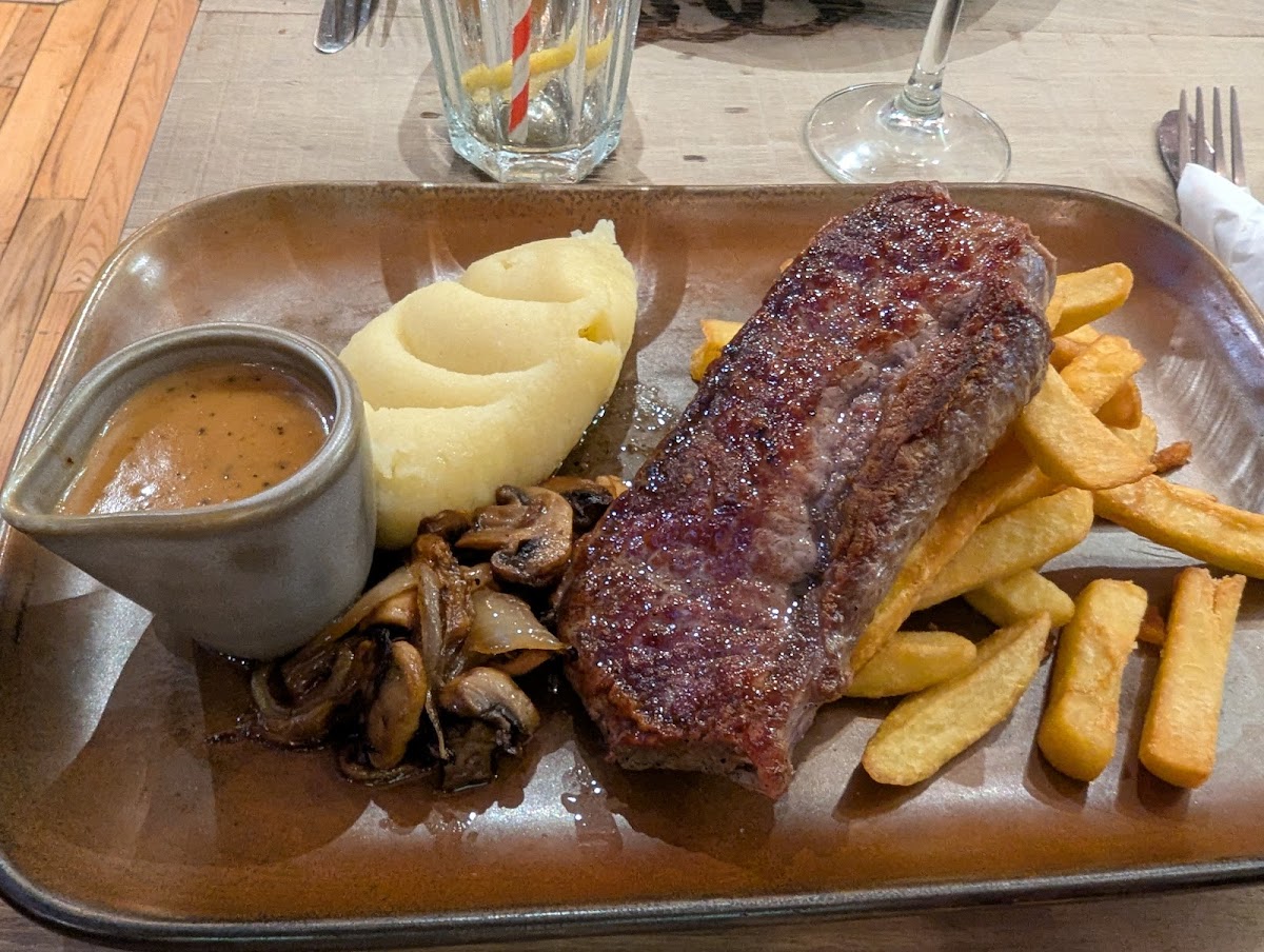 Only second time here first time was a very bad experience furniture was not well maintained food wasn't bad, but it's improved since, was pleasantly surprised by the quality of the food, the service and selection, the time we went was great, there was no noise, we booked a table, and got straight in our waitress was pleasant, gave every option and did come back asking if everything was ok, couldn't fault it, a great asset for the town,